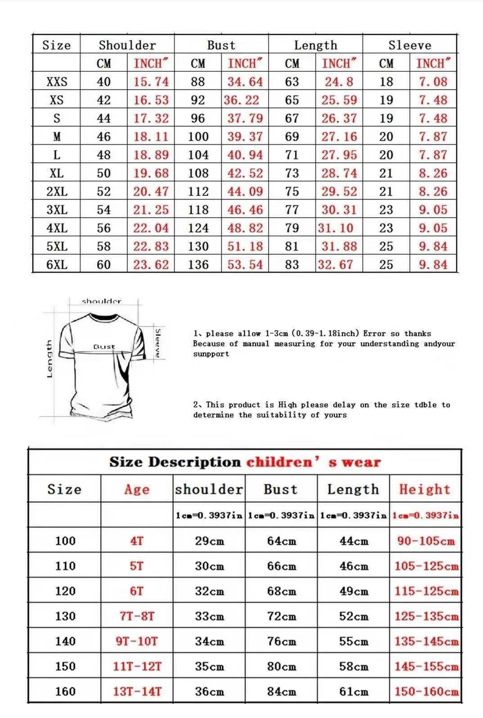 Sizes: XXS to 6XL, 100 to 160 (child sizes included)